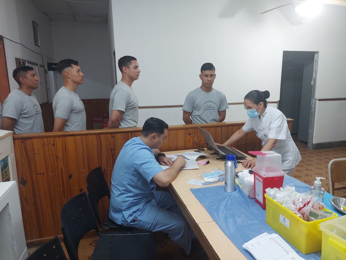 En la oportunidad, los efectivos de la Dirección de Bienestar y Sanidad de la Fuerza estuvieron acompañados del Director, Comandante Mayor Roberto Luis Danielis, quien aprovechó la ocasión para observar los avances de la segunda etapa de la campaña de vacunación 2024, realizada al personal de Aspirantes a Suboficiales y Gendarmes.