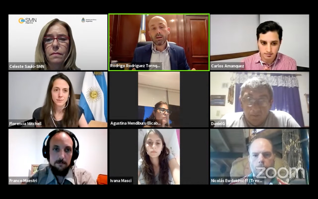 Junto al secretario, estuvo presente la directora del Servicio Meteorológico Nacional y vicepresidenta de la Organización Meteorológica Mundial, Celeste Saulo, quien realizó una presentación de la situación climática a nivel global y nacional y la secretaria de Investigación Política Industrial y Producción del Ministerio de Defensa, Daniela Castro quienes participan activamente del GNCC.