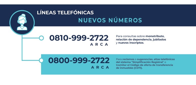 Para reclamos o sugerencias, altas telefónicas del sistema "Simplificación Registral" o tramitar el COTI, estará habilitada la línea 0800-999-2722 (ARCA).
