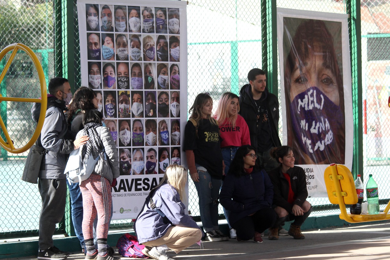 El programa Casas de la Historia y la Cultura del Bicentenario del Ministerio de Cultura en articulación con la Asamblea Feminista del Barrio Padre Mugica fueron los encarados de instalar las gigantografías pertenecientes a ATRAVESADXS, que fueron expuestas alrededor de la cancha Bichito de Luz, en el espacio verde del bajo autopista, ubicado en la Calle Evita y Aljaba Magallánica, donde se reúne actualmente la Asamblea. Se pudo acceder también a los testimonios escritos y sonoros a través de los códigos QR que acompañan cada fotografía. La jornada contó con pintadas de stencil, entre las que resaltaron “¿Dónde está Tehuel?” y “No aparecemos muertos, nos matan”.