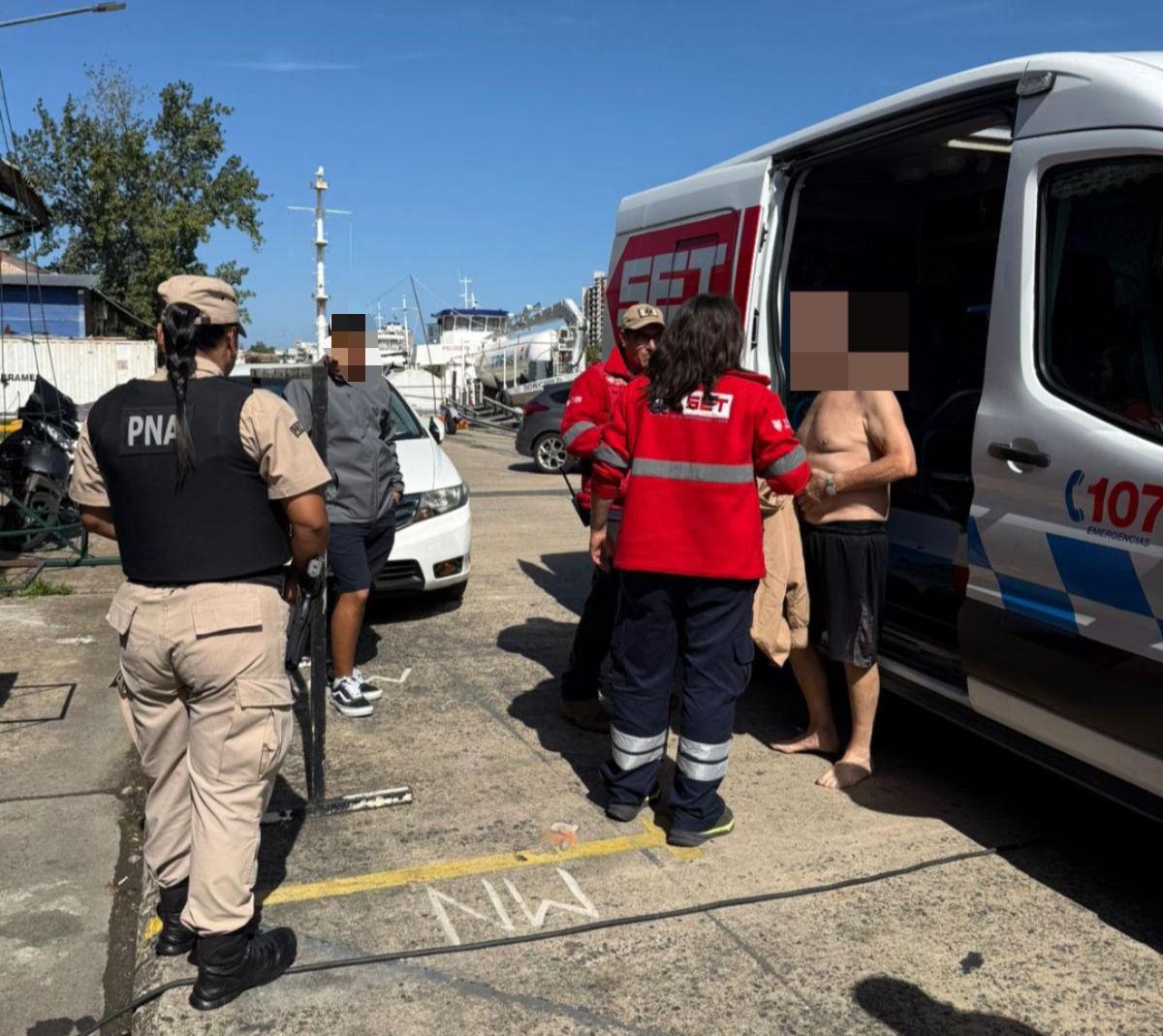 El damnificado fue trasladado a la Dársena N° 3 del Puerto de Frutos, donde se solicitó la intervención del Servicio de Emergencias Tigre (SET), constatando que se encontraba fuera de peligro.