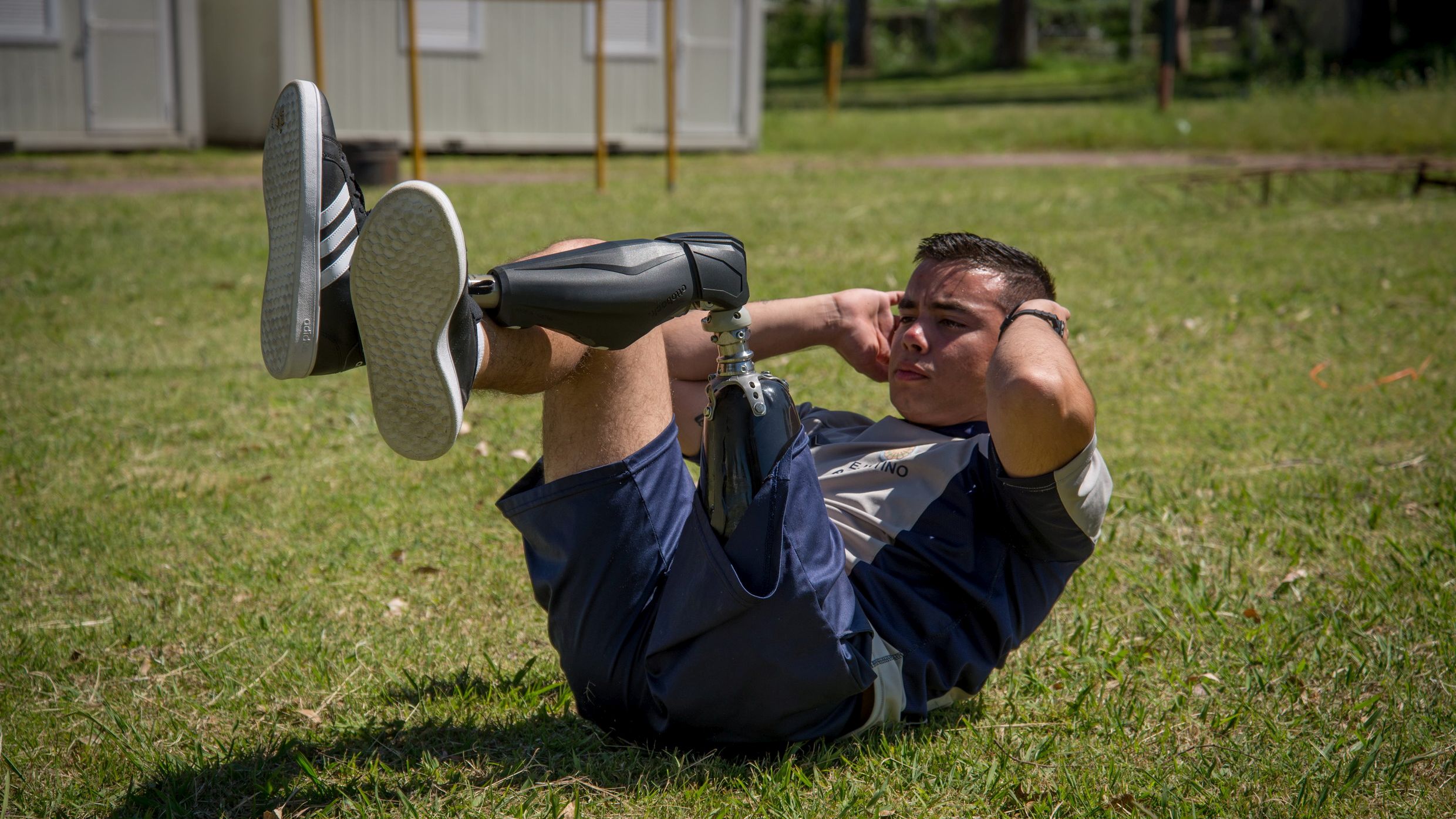 El cabo Mauricio Molina, a quien debieron amputarle la pierna izquierda a causa de un accidente, demuestra a diario su voluntad inquebrantable de recuperación. ¿La meta? Poder usar de nuevo el uniforme de combate.