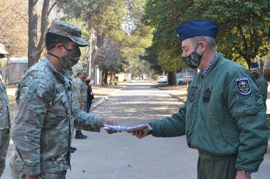 Posteriormente se realizó la entrega de diplomas, fotos recordatorias y pañuelos distintivos de la Unidad a cada uno de los integrantes de la Tropa Voluntaria que realizaron su Vuelo de Bautismo: los soldados voluntarios 1° Nicolás Zavala, Alexis Márquez; Melanie Barrera, Christopher Díaz y Luis Duarte.