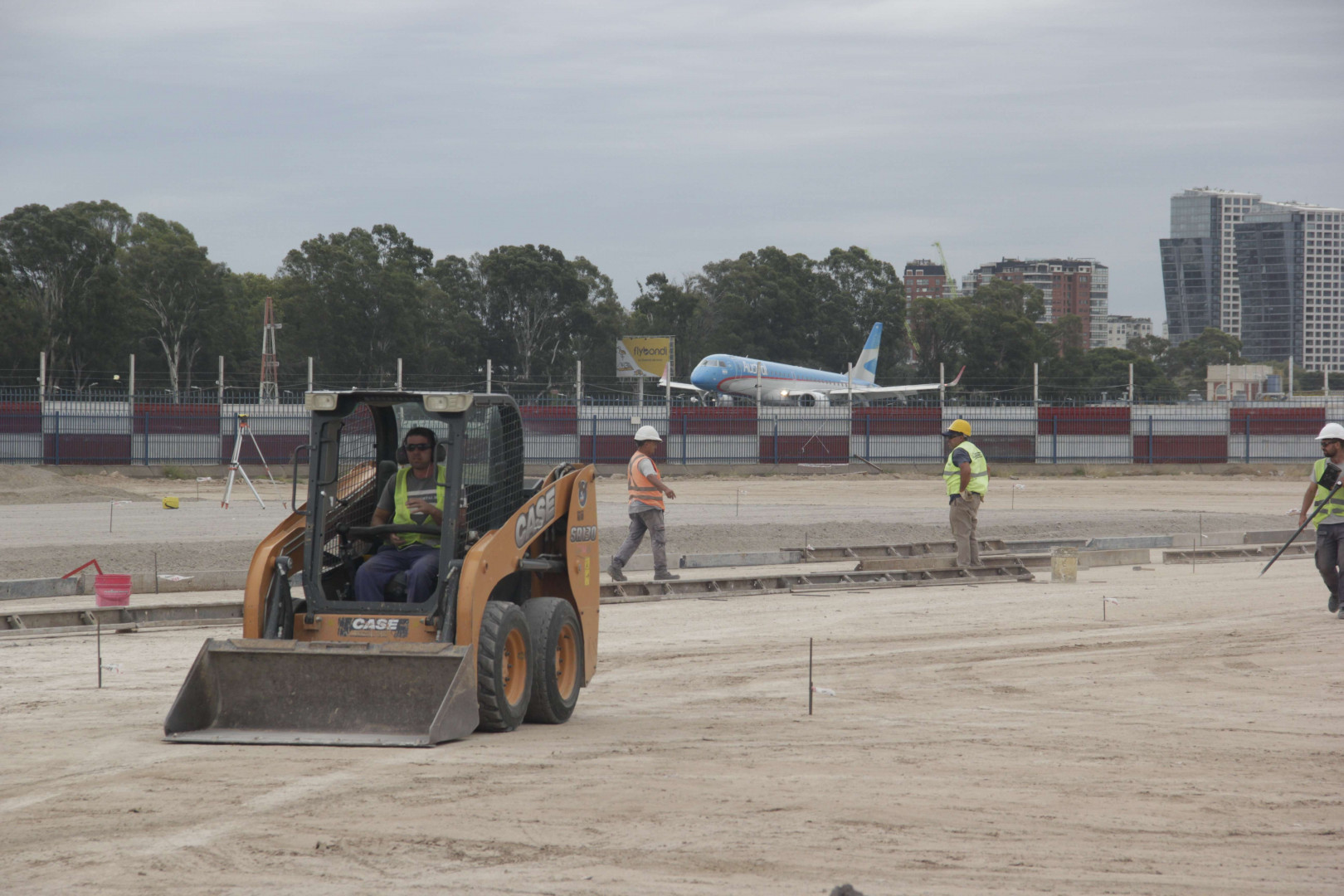 La obra comprende la construcción de la plataforma norte de pavimento de hormigón y sus respectivos márgenes pavimentados en concreto asfáltico. Al respecto, con una superficie total de 65.000m² esta nueva plataforma permite, rectificando los actuales puestos 1 y 2 de operación remota, disponer de dos posiciones de contacto para aeronaves clave C y otras dos posiciones adicionales para aeronaves clave E. Alternativamente a la configuración descripta, los puestos destinados a aeronaves LC “E” podrán ser reemplazados por cuatro aeronaves Clave C, permitiendo de este modo operar de manera simultánea seis aeronaves clave C. Esta nueva plataforma acompaña el desarrollo de los futuros edificios 7 y 8 previéndose en esta obra la construcción de las fundaciones y la estructura de los núcleos frente al edificio 8.