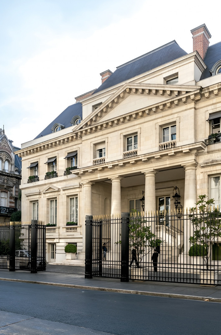El Palacio Duhau, construido en 1934, fue obra del arquitecto León Dourge y es uno de los últimos ejemplos de este tipo de viviendas aristocráticas en Buenos Aires. Conserva las características del emplazamiento original, con cocheras y locales de servicios en la fachada posterior sobre la calle Posadas y jardines que ocupan una gran proporción del predio. Se inscribe en el último ciclo del Neoclasicismo, donde se destacan los elementos tradicionales de esta arquitectura con sus líneas absolutamente simplificadas. Fue construido en el terreno donde estuviera la residencia de Teodoro de Bary, en la que se alojó la infanta Isabel de Borbón en su visita al país durante los festejos del Centenario.