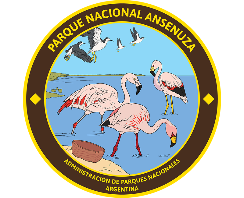 En el emblema del Parque Nacional Ansenuza se destacan las especies de aves emblemáticas que utilizan la laguna de Mar Chiquita como ambiente. Ocupando un espacio importante se encuentran tres especies de aves asociadas a ambientes acuáticos preferentemente salobres y estrechamente emparentadas entre sí a las que se agrupa bajo la denominación común de flamencos. Se trata del flamenco austral (Phoenicopterus chilensis) y las parinas chica (Phoenicoparrus jamesi) y grande (Phoenicoparrus andinus).
