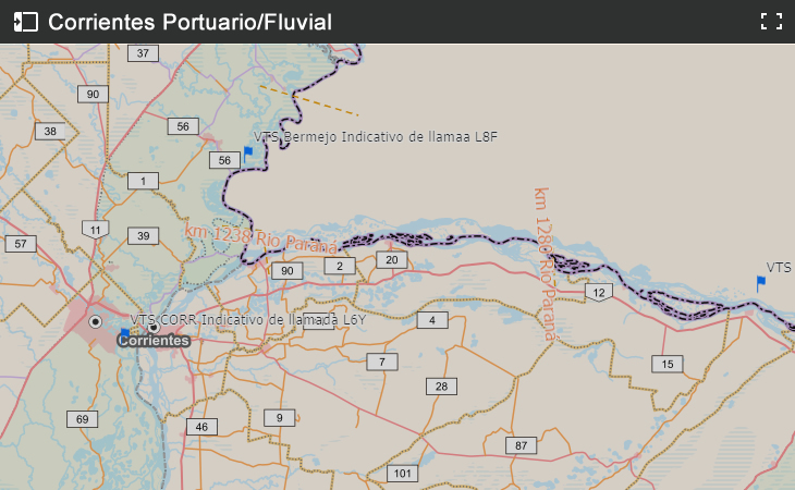 República del Paraguay, al Sur el paralelo que pasa por el km 1135 del Río Paraná. Vía: VHF Canal 12 (156,600 MHz) VTS Corrientes (indicativo de llamada L6Y). Punto de Control A: km 280 del Río Paraguay - Prefectura Formosa, indicativo de llamada L8I. Punto de Control B: km 852 del Río Paraná - Prefectura Esquina, indicativo de llamada L6T.