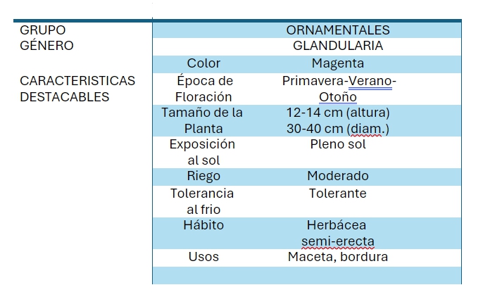 #glandularia |#variedad |#ornamental |#flores |#rosa |#maceta |#hojas |#inflorescencias |#Verbena |#Hana Magenta INTA |#cantero |#bajo |#requerimiento |#hídrico