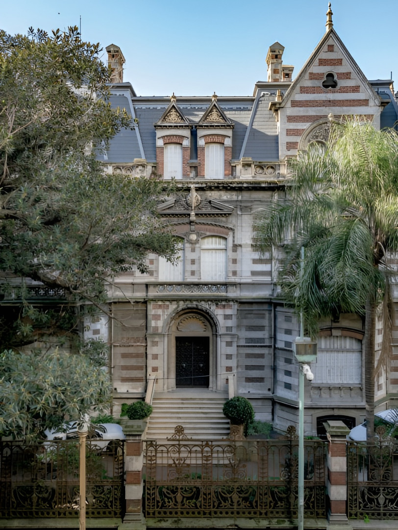 Cabe señalar que muchos de los materiales empleados en la construcción provenían de Escocia, tierra natal del primer propietario, y que entre los revestimientos de sus interiores se destaca el palo santo. El diseño de los jardines –que se ubican en los fondos del predio, hacia la calle Posadas– pertenece al célebre paisajista Carlos Thays.