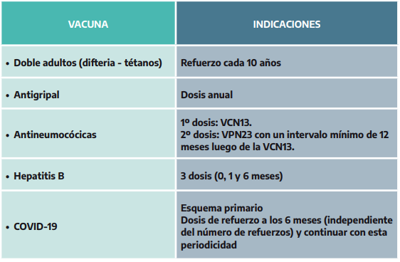 Las vacunas son una de las medidas de prevención más efectivas. Hay vacunas recomendadas para cada etapa de la vida. Las vacunas del calendario nacional son seguras, eficaces y gratuitas. Las personas mayores de 65 de años, deben recibir las siguientes vacunas: