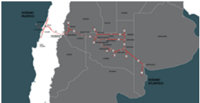 Une los Puertos de Bahía Blanca en Argentina y Concepción en Chile. Su extensión aproximada es de 1311 km. Su objetivo es brindar una alternativa de transporte a una amplia región de Argentina, como también, al transporte internacional en tránsito. Es un proyecto dentro de los ejes de integración propuestos por IIRSA.